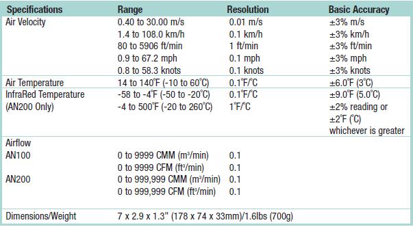 美國EXTECH AN200葉輪風速儀的技術參數: