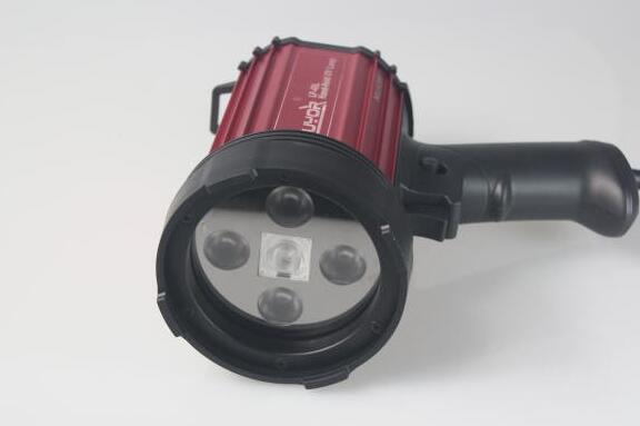 4顆紫外線led,聚焦型,透明濾色片,內置電池組供電。38cm處紫外線中心強度為6000uw/cm2 |