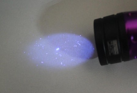 大多數(shù)的體液在高強度的紫外線作用下可以看到,是因為體液有自然熒光反射的特點。在復(fù)雜的刑偵現(xiàn)場,可以利用高強度的紫外線燈簡單及不復(fù)雜的使用方式尋找到有價值的痕跡。在高強度紫外線能量的激發(fā)下,這些體液的熒光反射是人的肉眼可以直接看到的。雖然,這種方式不能直接確認所找到的體液是哪一種,但是,通過使用高強度紫外線燈遠距離大面積的搜尋,可以直接幫助你確定在哪里有提取價值的痕跡物證,然后可以對 這些地方進行編號標出,從而為下一步的分析提供有價值的物證。